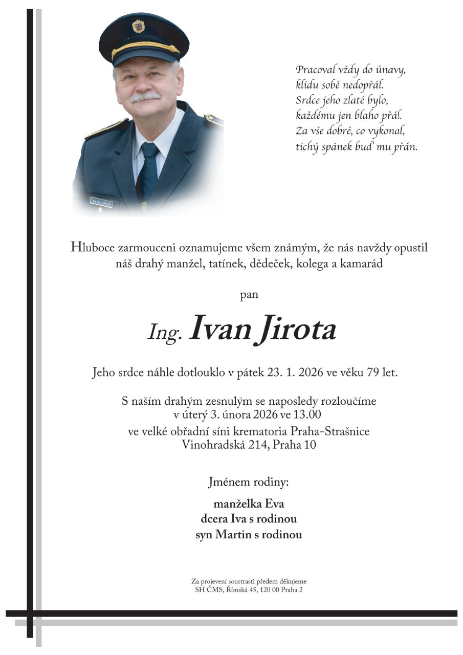 S hlubokým zármutkem jsme přijali zprávu o úmrtí našeho kolegy a dlouholetého spolupracovníka Ivana Jiroty, který se narodil 26. září 1946 a odešel ve věku nedožitých 80 let.